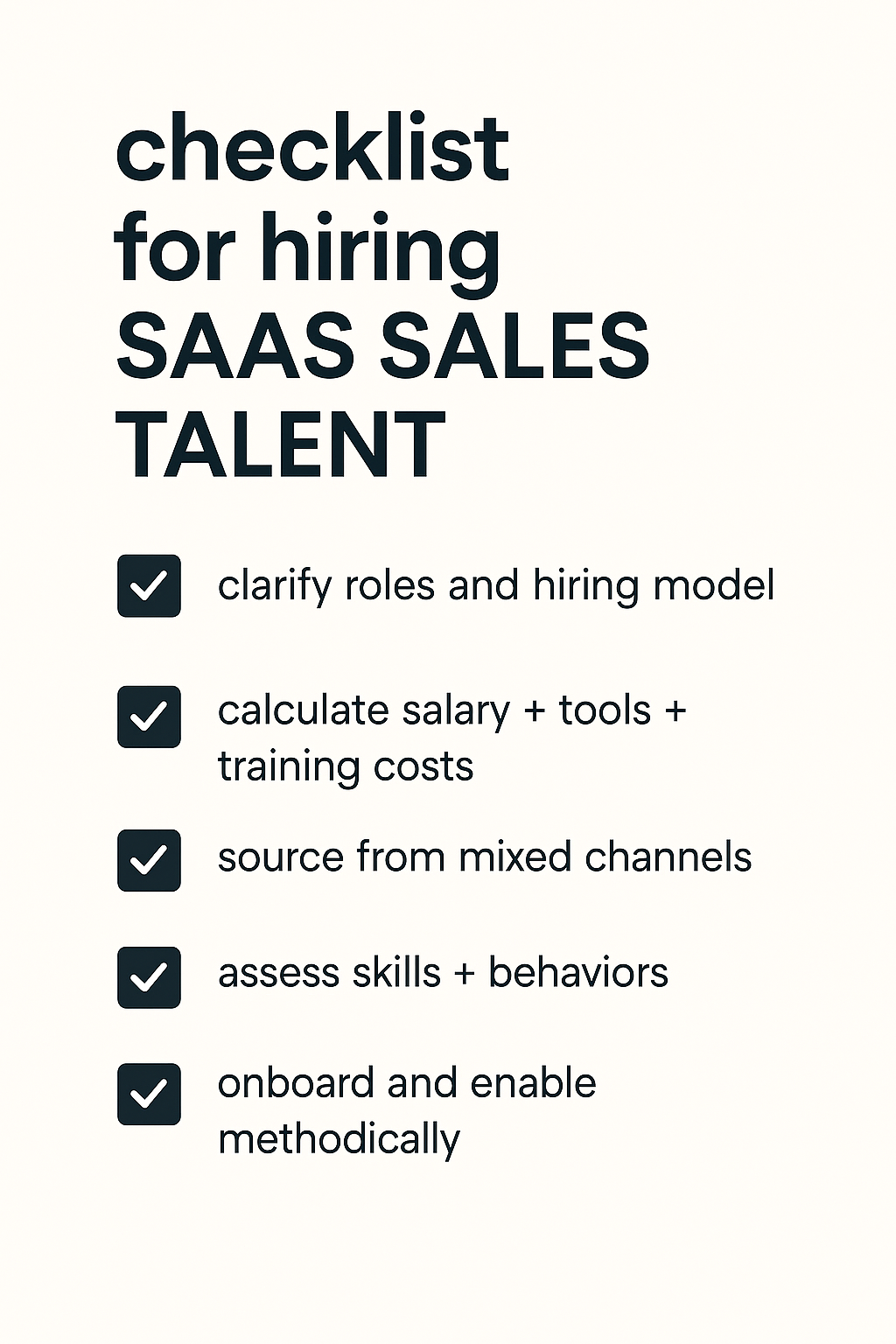 Building a top-performing sales team isn’t just tactical—it’s strategic. Sourcing, evaluating, and onboarding top SaaS sales talent can make or break your growth trajectory. Here’s a guide that mirrors proven best practices, tailored for SaaS startups.